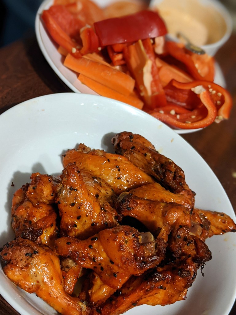 Truly a snack. Picked up lemon garlic masala wings, cut up some veggies, and hey, at least I made my own dip!