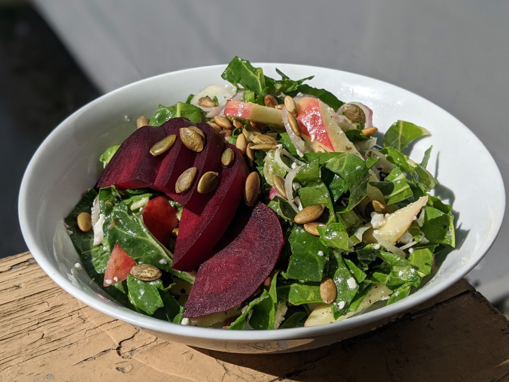 See, I DO make a salads! Rainbow chard with apples, feta, toasted pumpkin seeds, beets, and lemon vinaigrette. Carries over for great rando-fusion bowls… adding some acid and textural contrast to the fried rice and lentils? ¯\_(ツ)_/¯