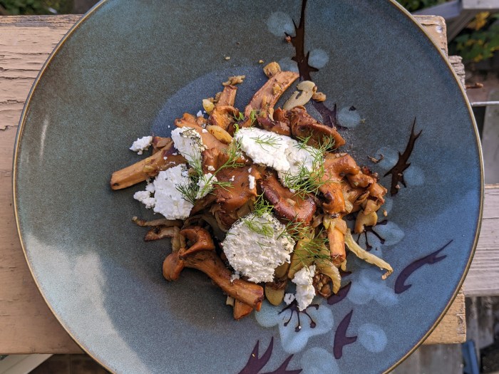 Chanterelles! It’s been too too long! Enjoyed with some fennel and the last of the goat cheese!