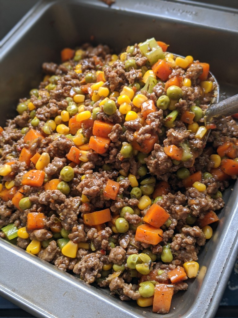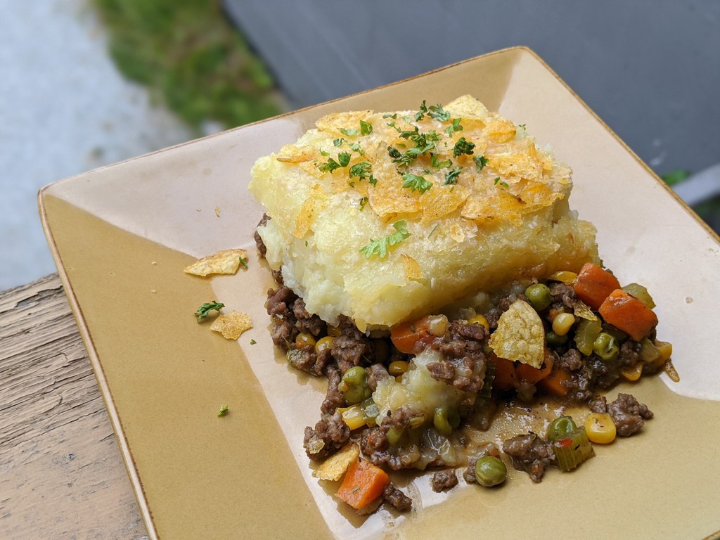 Shephard’s Pie because it was the first gloomy day in a while. Did not realize I was out of Worcestershire sauce. Bit of BBQ sauce to the rescue!