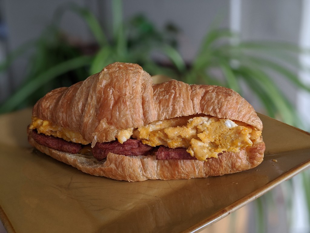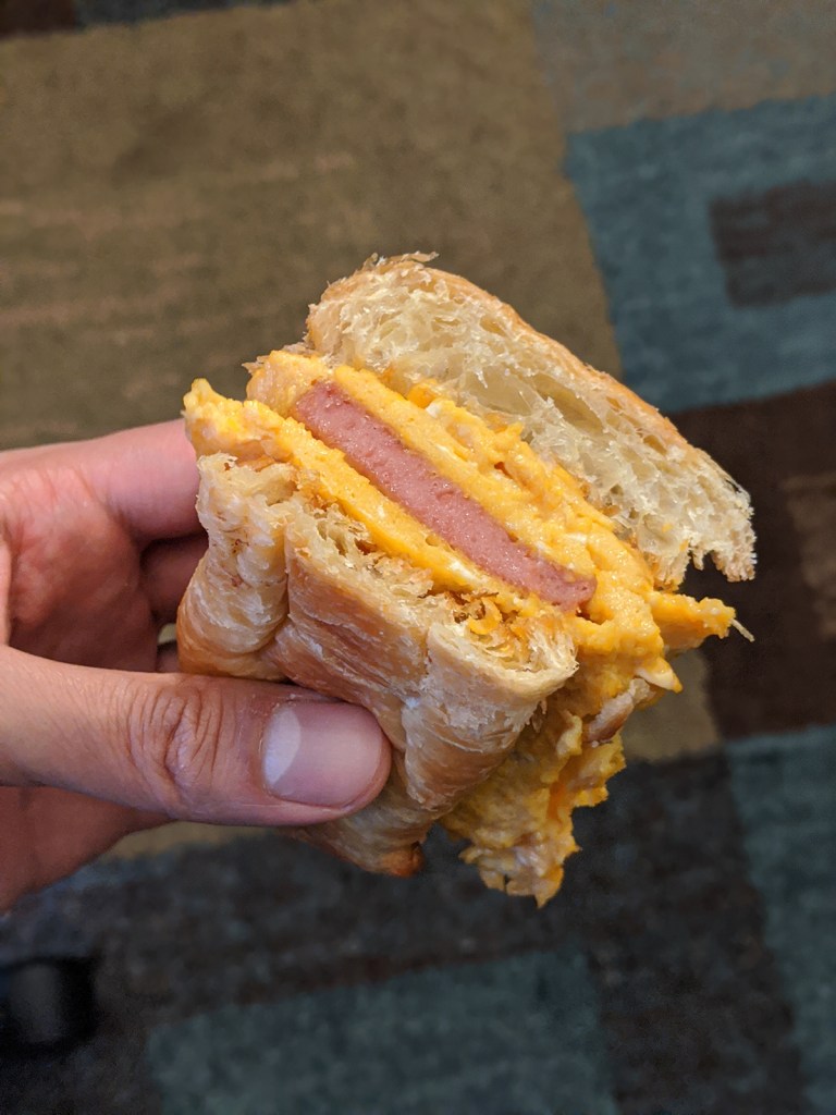 Air fryer’d spam and Japanese style omelette (failed the fold though) breakfast sandwich.
