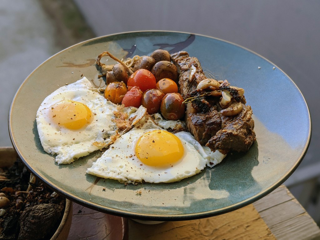 Whelp, what can I say, I’m lucky to be able to work from home and meet all my basic needs. So, first set of quarantine cooking! Leftover steak breakfast and coffee.